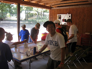 Our day started off with mail call. We got this one letter that the addressee's name was illegible. After closer examination we found that it was sealed with a red kiss. We decided that this could not be a letter suitable for a scout so the scoutmasters drew straws to see who would get the letter.........